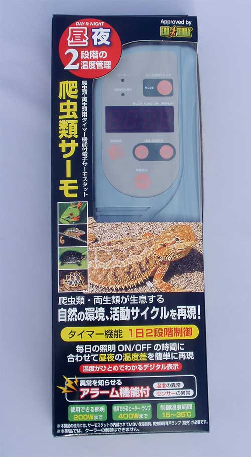 【送料激安】ペットケージの環境管理に!爬虫類サーモ(デジタルサーモスタット)価格: 6,880円レビュー評価: 5.0 レビュー数:1 ■商品名■ 爬虫類サーモ(デジタルサーモスタット)■送料■400円※沖縄を含む離島にお住まいの方は別途料金が必要です。■商品情報■★ヒーターと照明をコントロールします。★設定した温度以上になるとヒーターをオフ、以下になるとオンにしてくれます。★タイマーをセットすることで照明をオン・オフにする時間を設定できます。★爬虫類だけでなく昆虫、ハムスターなどの小動物、熱帯魚、鳥などいろいろなペットに使用できます。・センサーによりケージ内の温度をデジタル表示!・ヒーターを2つ(合計400Wまで)と照明(200Wまで)をコントロール。・異常を知らせる警報装置付!温度の異常(上昇・降下)やセンサーの異常(断熱 |